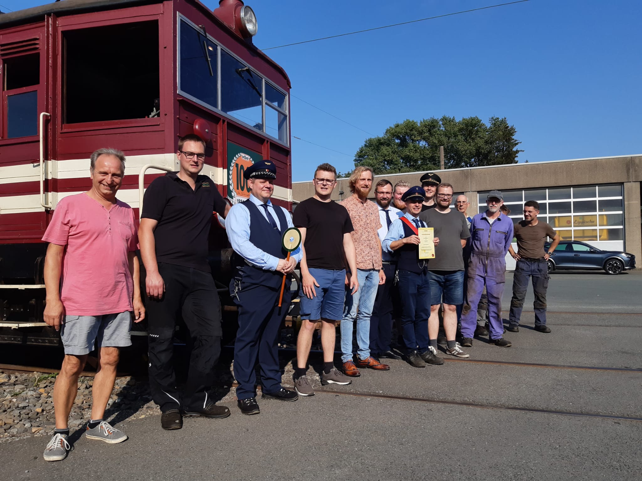 Die Jahre 2024 und 2025 standen sodann ganz im Lichte von Jubiläen. Der dauerhafte Kooperationspartner vbe beging im September 2024 die 100-Jahr-Feierlichkeiten der Firmengründung – damals freilich noch als „Extertalbahn A.G.“ – und zollte den Aktivitäten der LEL um das eisenbahnhistorische Erbe großen Respekt, indem die Züge des Vereins in die Feierlichkeiten eingebunden wurden. Das Folgejahr schließlich zeichnete als 40. Jahr des Bestehens der LEL selbst und wurde ebenfalls gebührend begangen. Neben dem regulären Fahrtenprogramm fand im Sommer bei bestem Wetter ein Festakt für Mitglieder, Förderer und Freunde des Vereins auf dem Bahnhofsplatz in Alverdissen statt. Wie erfreulicherweise bereits seit einigen Jahren wurde auch die in Bösingfeld und Farmbeck genutzte Werkstattinfrastruktur als Zeichen der Wertschätzung sowohl gegenüber dem „Hausherrn“ vbe als auch gegenüber den Aktiven durch Entrümpeln, Säubern und Renovieren weiter aufgewertet. Auch die vbe selbst unterstützten hierbei maßgeblich und ermöglichten eine bereits seit vielen Jahrzehnten herbeigesehnte Verlängerung des Bahnsteigs in Bösingfeld, sodass die Fahrgäste nun bequem und sicher alle Türen des langen Reisezuges erreichen können. Der Verein investierte schließlich einen nennenswerten Geldbetrag zur erstmaligen Renovierung des von seinen Aktiven genutzten Sozialraums im Betriebshof Bösingfeld, der nun wieder hell, freundlich und zeitgemäß zum Verweilen nach getaner Arbeit einlädt.