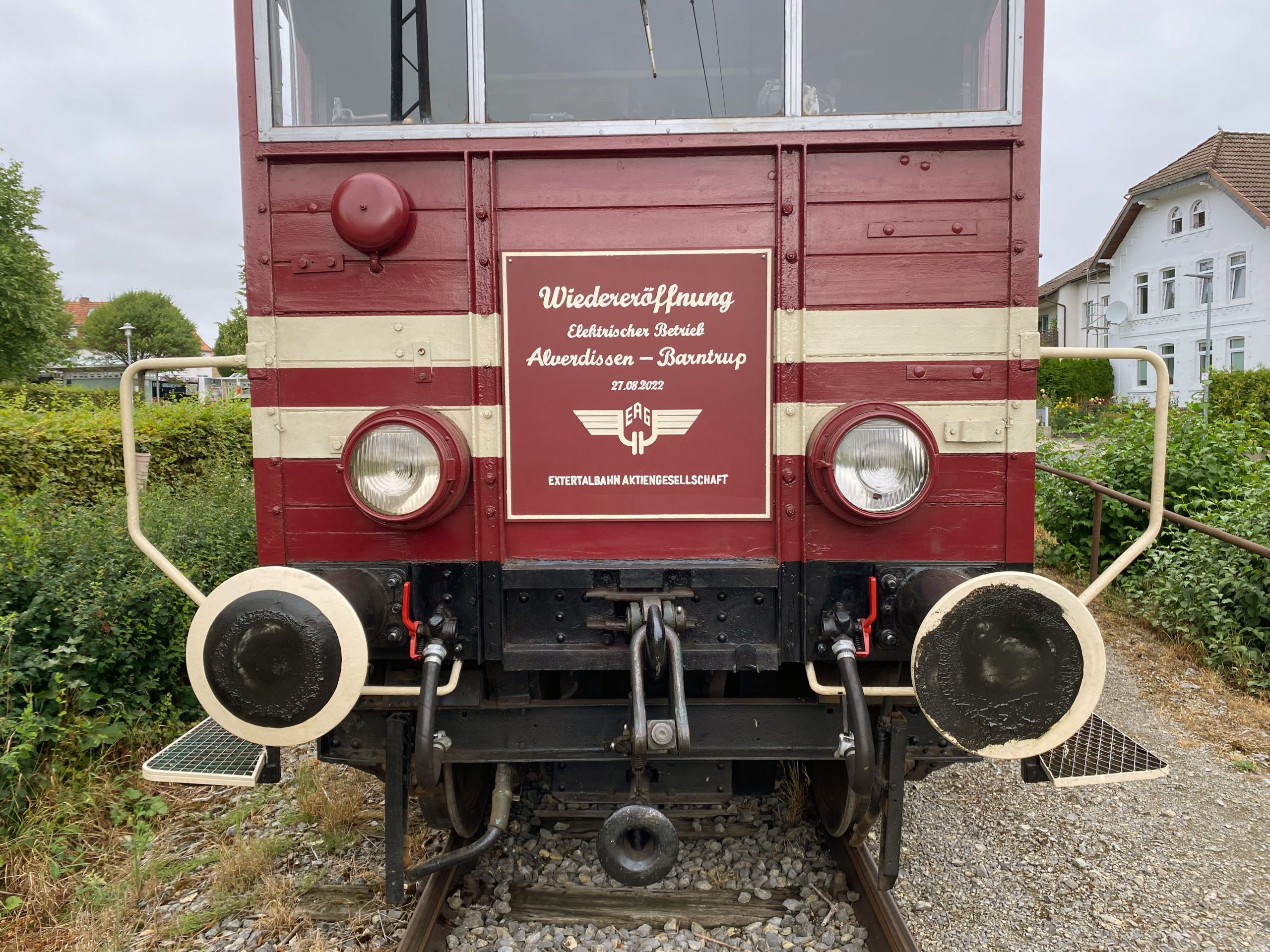 Das Jahr 2022 begann erstmals wieder mit einer vollständigen Saisonplanung, einem gedruckten Jahresprogramm und der Hoffnung, den Fahrgästen endlich wieder das reichhaltige Angebot zeigen zu können, mit dem die LEL sich in der Region einen Namen gemacht hat. Durch eine gesamtgesellschaftlich günstige Entwicklung hat sich diese Hoffnung rückblickend erfüllt und der Verein war dankbar für all die Fahrgäste, die ihm die Treue gehalten und auch nach den schweren Jahren wieder gerne mit den Museumszügen mitgefahren sind. Bereits im Mai wurde ein für die weitere Entwicklung des Vereins äußerst wichtiges Ziel erreicht, nämlich die Wiederinbetriebnahme der elektrischen Fahrleitung zwischen Alverdissen und Barntrup. Nahezu 18 Jahre hatte hier der Fahrdraht gefehlt und die Struktur der alten elektrischen Extertalbahn gelähmt. Unbemerkt von Fahrgästen und der Öffentlichkeit war die erzwungene weitgehende Betriebsruhe der Jahre 2020 und 2021 genutzt worden, um diese so bedeutsamen Infrastrukturarbeiten voranzutreiben. Gefeiert wurde dies mit einer exklusiven Sonderfahrt für Mitglieder anlässlich der Jahreshauptversammlung, als bei schönstem Frühjahrswetter auch die ersten Fotos der E-Lok auf dem Streckenabschnitt gemacht werden konnten. Die offizielle und von politischer und gesellschaftlicher Prominenz mit gefeierte Eröffnung des elektrischen Betriebes fand im August 2022 mit einem Festakt in Barntrup statt.
